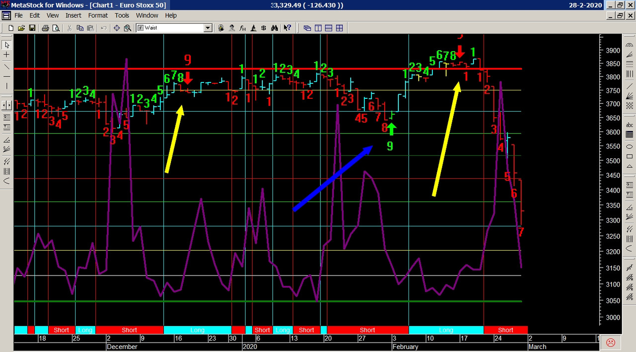 De Tom DeMark is bij 7 een 9 is een top of een bodem.